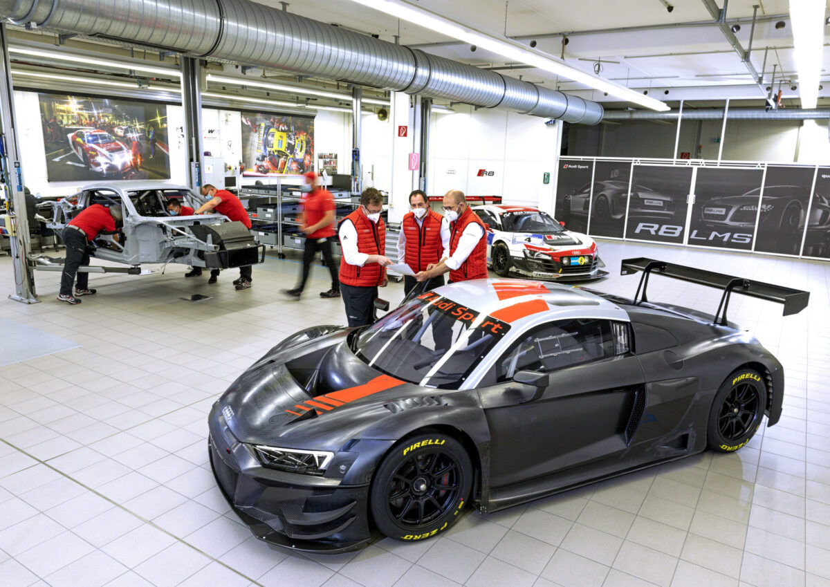 Além do modelo GT3, a marca tem duas variantes de corrida adicionais do R8 nos modelos GT2 e GT4. Destes, um total de mais de 100 carros de corrida GT adicionais foram construídos até agora. O carro de turismo RS 3 LMS, que está disponível em sua segunda geração desde o começo do ano, completa o amplo portfólio de modelos de corrida para clientes da Audi Sport.