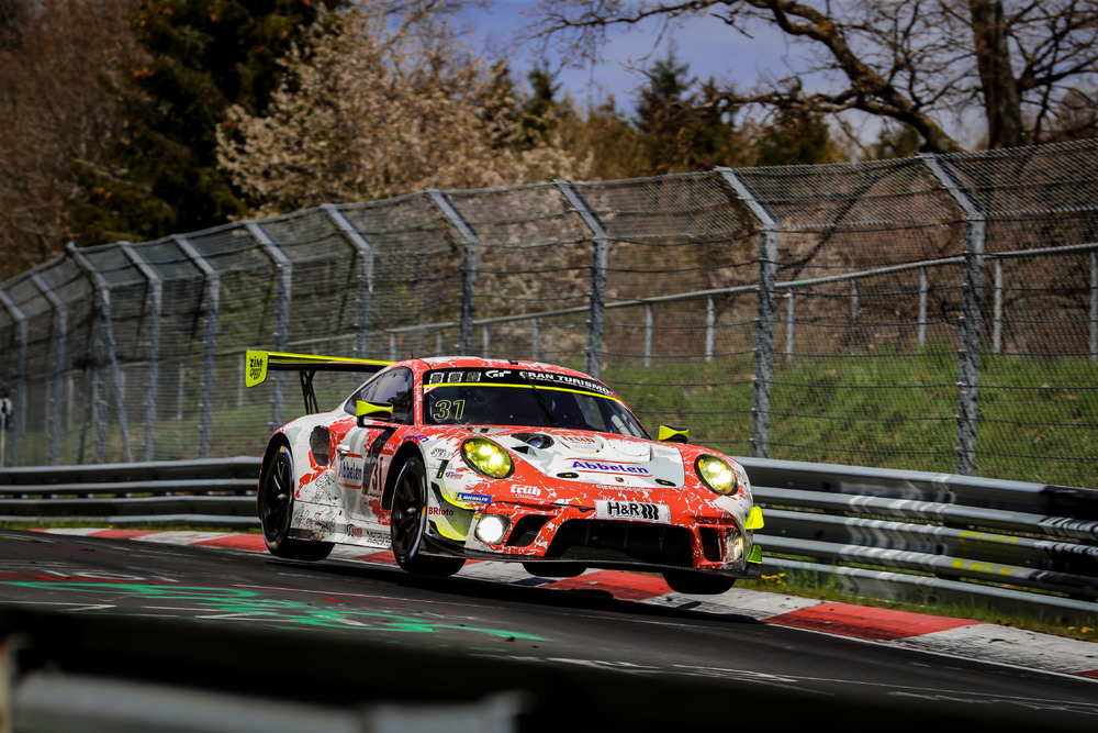 Romain Dumas assumiu a largada para a Rutronik, no entanto, o francês acabou saindo da pista por um competidor enquanto estava no circuito do GP  perdendo muito tempo.  Como resultado, seu compatriota Makowiecki herdou o segundo. Na volta 12, o 911 GT3 R assumiu a liderança pela primeira vez. Depois de entregar o carro a Patrick Pilet, o #31 ficou sob intensa pressão do Audi de Frank Stippler. Um toque, no entanto, ao dar uma volta em um carro mais lento custou ao ao Audi um tempo valioso e deu a Pilet uma vantagem de mais de 20 segundos. Maxime Martin então assume o volante no início da quarta hora e ampliou a vantagem.