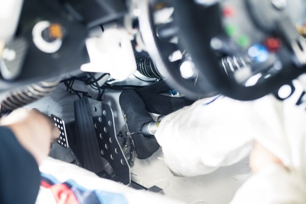 BMW M6 GT3 (2016): pedal de freio fino, semelhante ao 24h Spa; volante com anel para aceleração; mudanças de marchas usando pás de mudança no volante; embreagem centrífuga recém-desenvolvida